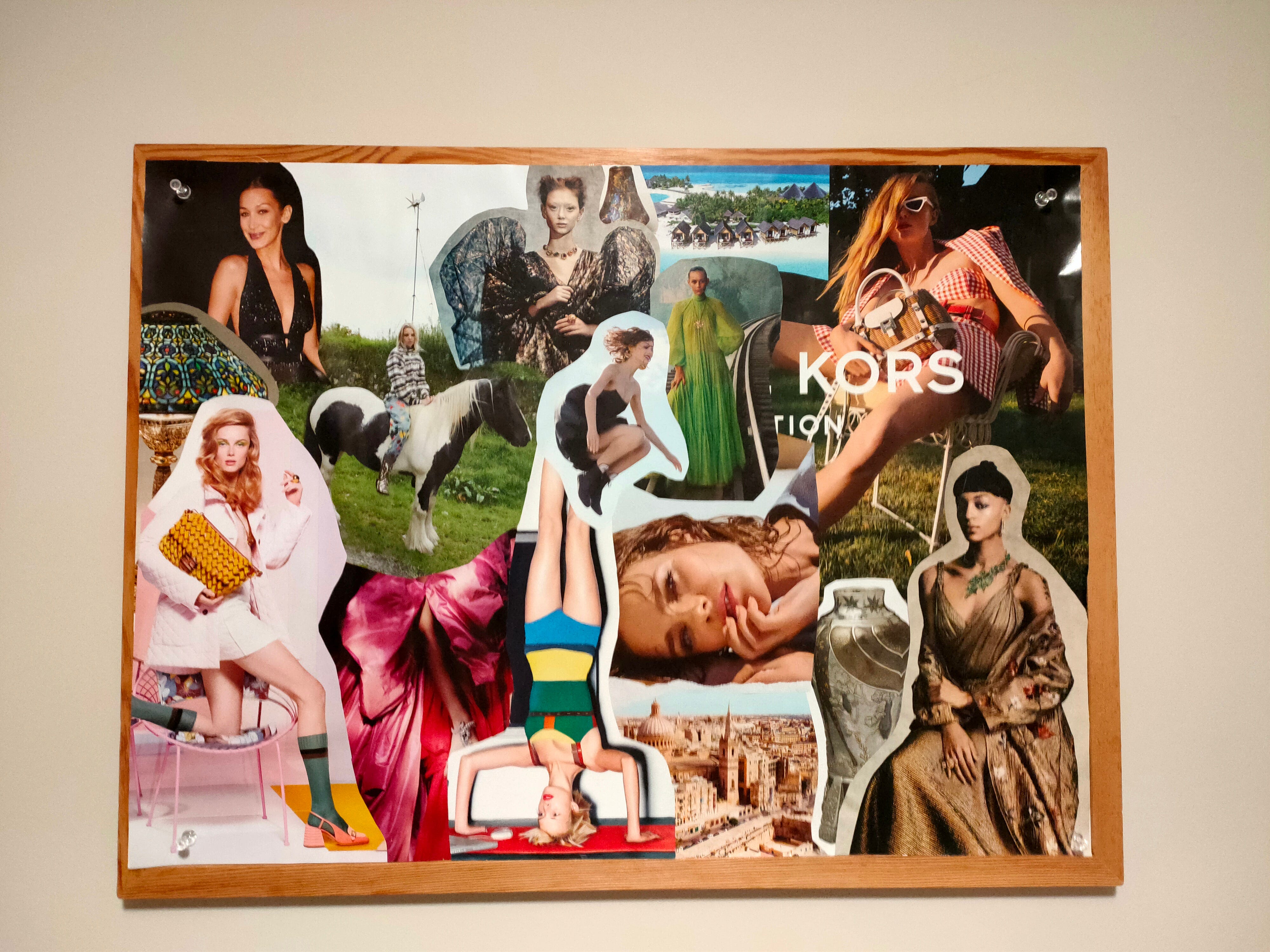Often it’s just one or two images with a poem or a phrase I want to guide me, but for Aphrodite I went big and bold. I spent a lot of last night tearing pictures from old Vogue magazines, and more time arranging and pasting them.