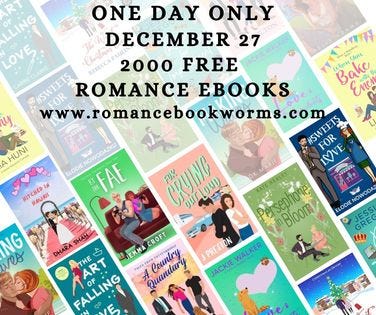 These legendary events include MASSES of free romance e-books in a bunch of genres on a bunch of retailers - no newsletter sign-up or hoop-jumping required. And if you’ve still got books unread on your e-reader from the last one (it me), please note the following: